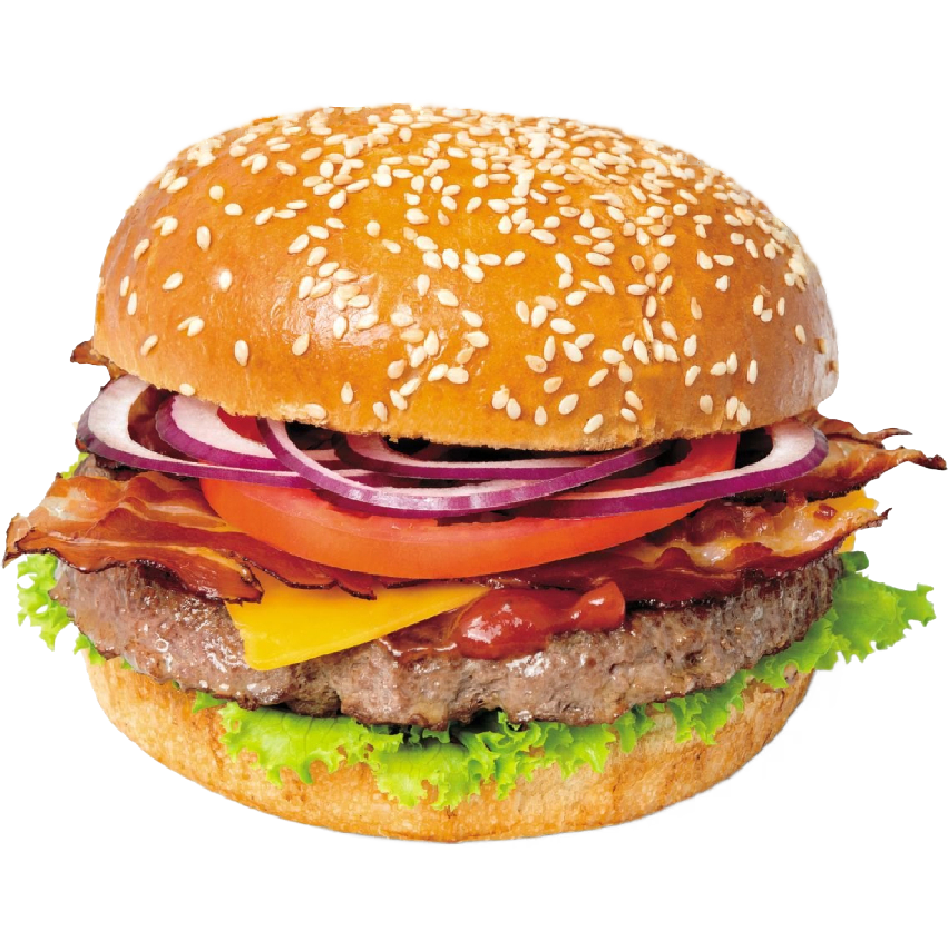 Склад: булка, яловича котлета, бекон, листовий чеддер (2 шт.), соус, помідор, салат айсберг, маринований огірок
